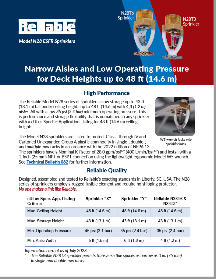 cULus Listed Specific Application ESFR Sprinklers for protection of storage under ceiling heights up to 48 ft (14.6 m)